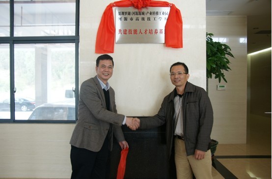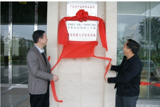 (圖五)黎海波校長為我校與深圳鹽田(東源)產(chǎn)業(yè)轉(zhuǎn)移工業(yè)園技能人才培養(yǎng)基地揭牌
