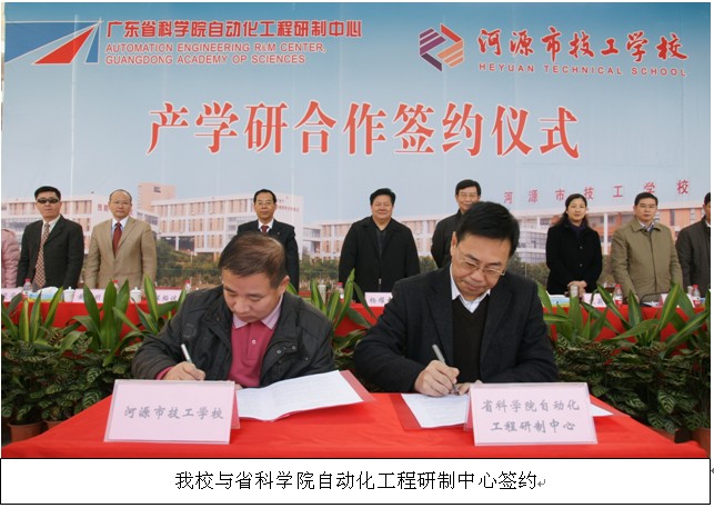 1月9日,我校與廣東省科學(xué)院自動(dòng)化工程研制中心(以下簡(jiǎn)稱“省科院自動(dòng)化中心”)簽訂產(chǎn)學(xué)研合作協(xié)議。今后,雙方將在專業(yè)教學(xué)方案的設(shè)計(jì)開發(fā),師資和高技能人才的培養(yǎng)、培訓(xùn),教學(xué)實(shí)訓(xùn)等方面展開深入合作。