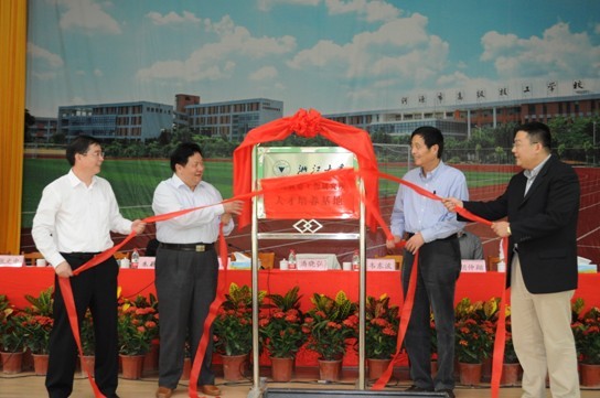 11月3日上午,我校與浙江大學(xué)產(chǎn)學(xué)研合作簽約儀式在學(xué)校體育館隆重舉行。市委常委、副市長楊耀初,市人力資源和社會保障局局長朱蔚蔚,浙江大學(xué)機(jī)械與能源工程學(xué)院副院長、教授、博士生導(dǎo)師潘曉弘,浙江大學(xué)現(xiàn)代制造工程研究所技術(shù)應(yīng)用與轉(zhuǎn)移中心主任、高級工程師韋東波和校領(lǐng)導(dǎo)班子出席了本次活動,并為“人才培養(yǎng)基地”揭牌。根據(jù)協(xié)議,我校將與浙江大學(xué)將建設(shè)模具快速制造及精密檢測實(shí)訓(xùn)中心(簡稱中心),成立“逆向工程班”、面向全社會招生,為我市培養(yǎng)模具產(chǎn)業(yè)所需的綜合型、高素質(zhì)、高技能人才,服務(wù)當(dāng)代模具產(chǎn)業(yè)。