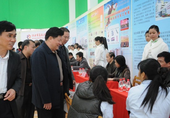 12月20日,全省技工院校與省級產(chǎn)業(yè)園區(qū)對接合作洽談會在我校隆重舉行。市委常委、副市長楊耀初同志到會作重要講話,省人力資源和社會保障廳技工教育管理處處長劉正讓同志就舉辦此次活動(dòng)的重要意義和目的作深刻闡述。會議由市政府副秘書長邱榮輝同志主持,市委組織部副部長、市人力資源和社會保障局局長朱蔚蔚同志、市經(jīng)濟(jì)和信息化局局長張志純同志出席了座談會。17家省屬技工學(xué)校及廣州市屬技工學(xué)校與我市逾百家企業(yè)參加了此次洽談會。會上,各技工院校與各企業(yè)商談合作事宜。通過深入交流,我校已與漢能光伏、西可通信等28家企業(yè)初步達(dá)成了合作共識。