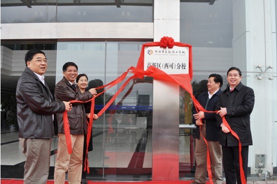 為貫徹落實汪洋書記在《德國職業(yè)教育考察報告》上的重要批示精神和同意開展“校園對接產(chǎn)業(yè)園工程”的指示精神,進一步推進校企合作機制創(chuàng)新和不斷深化教育教學(xué)改革,為企業(yè)提前儲備一批適合現(xiàn)代化生產(chǎn)的專業(yè)技術(shù)人才,1月4日,市高級技工學(xué)校再次牽手西可通信技術(shù)設(shè)備有限公司(下稱西可公司),共同舉行市高級技工學(xué)校高新區(qū)(西可)分校揭牌儀式。這是繼去年八月市高級技工學(xué)校與西可公司校企合作聯(lián)手創(chuàng)建全市首個“校中廠”之后的又一重要舉措。副市長楊耀初同志,市政府副秘書長邱榮輝,市政府副秘書長、高新區(qū)管委會主任李衍楠,市委組織部副部長、市人力資源和社會保障局局長朱蔚蔚等領(lǐng)導(dǎo)蒞臨活動現(xiàn)場,并為市高級技工學(xué)校高新區(qū)(西可)分校揭牌。