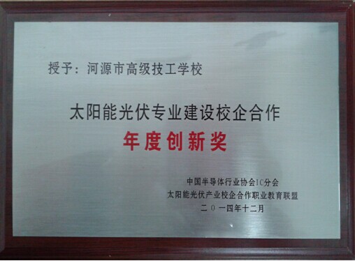 (圖二)2014年太陽能光伏專業(yè)建設(shè)校企合作年度創(chuàng)新獎(jiǎng)