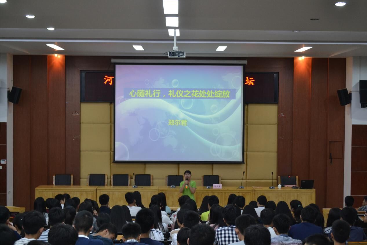 鄭爾君老師用幽默風(fēng)趣、簡單明了的語言給學(xué)生講授了關(guān)于禮儀方面的知識,從禮儀的基本準(zhǔn)則(誠信、謙虛、寬容、適度、合作、感恩)、語言禮節(jié)、行為禮節(jié)、儀容儀表等方面深入闡述了禮儀的重要性。講座期間,鄭老師從生活中和工作上給學(xué)生展示了各種不同的案例,還不時邀請學(xué)生現(xiàn)場互動,贏得學(xué)生掌聲不斷。